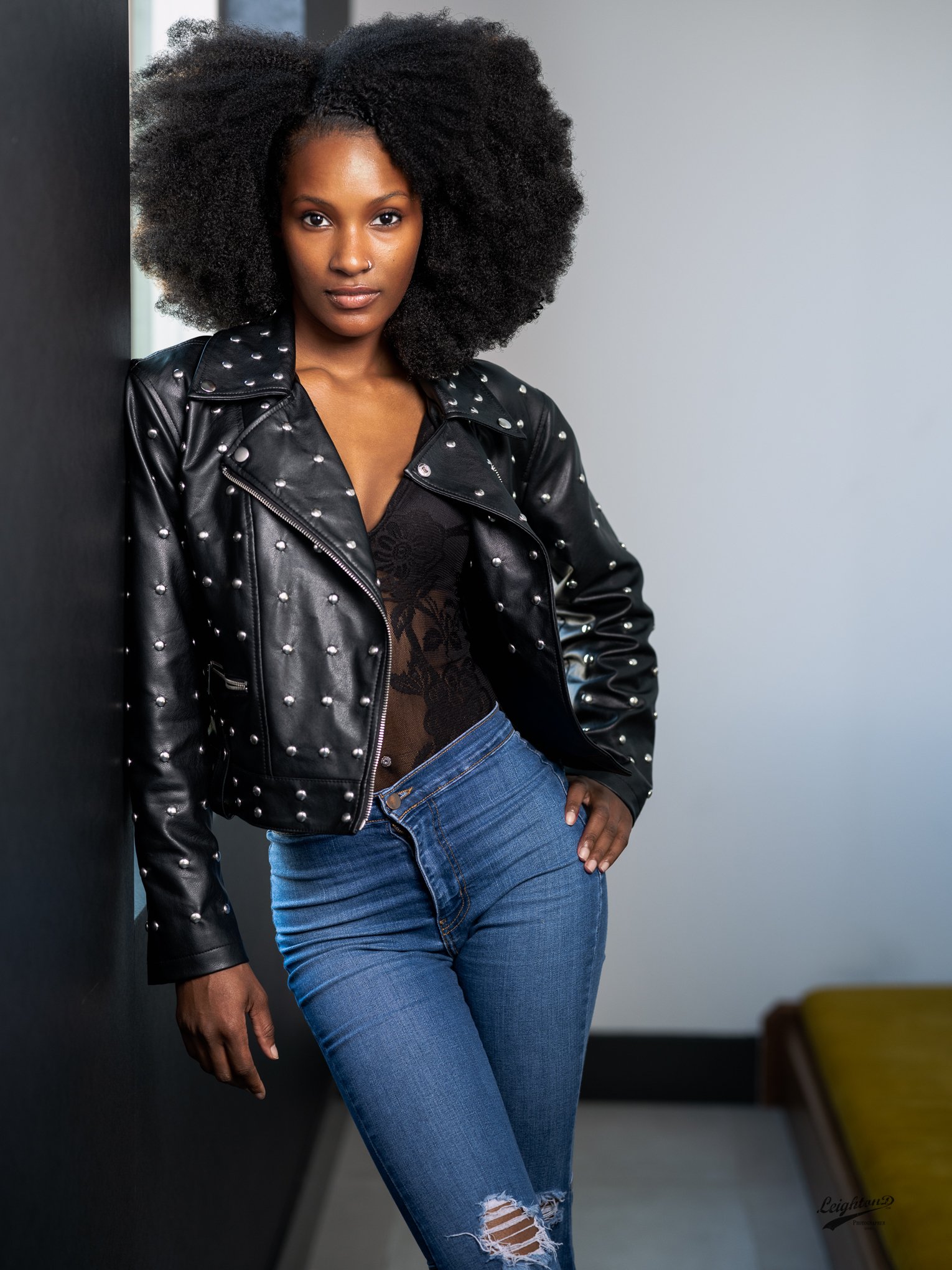 During our session, Kho'dai posed for modeling and acting headshots and was natural in front of the camera. Her smile lit up the room. Her elegant poses were effortless, making my job as a photographer a breeze.