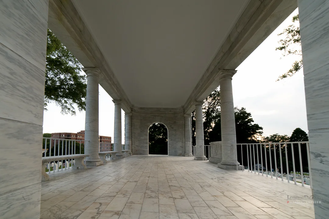 The white marble and concrete rostrum, 37 feet by 22 feet, with a metal roof was constructed in April 1940. The structure is of a classic architectural design and resembles a Greek temple of the Acropolis.